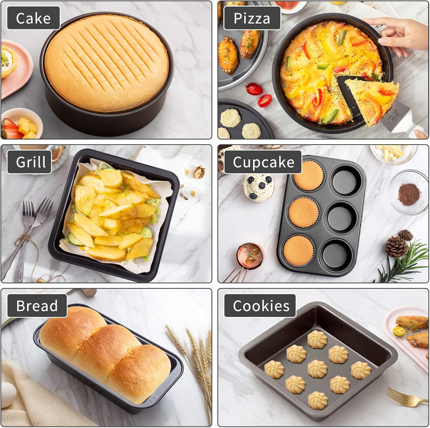 Tramontina Rise - Juego de 6 sartenes de cerámica antiadherentes, para galletas, panes, pasteles, brownies y magdalenas