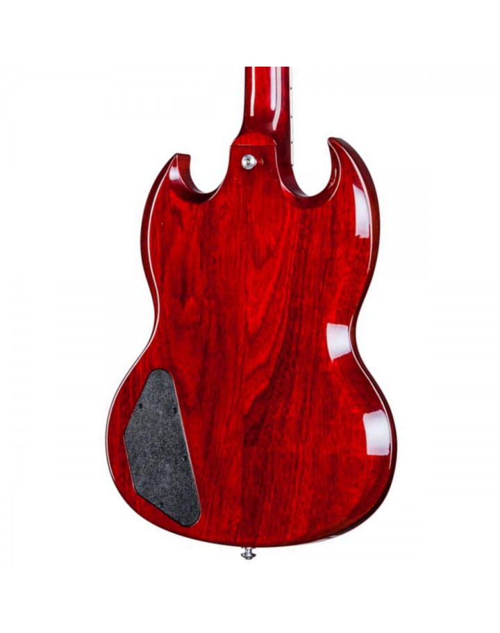 The 2017 SG Standard T model features a smaller teardrop-style black pickguard, similar to that found on the models released throughout the early 1960s' SGs. To enable the owner to keep the SG well looked after, Gibson include a hardshell brown case with the purchase, as well as a strap and polishing cloth to get you performance-ready right away.