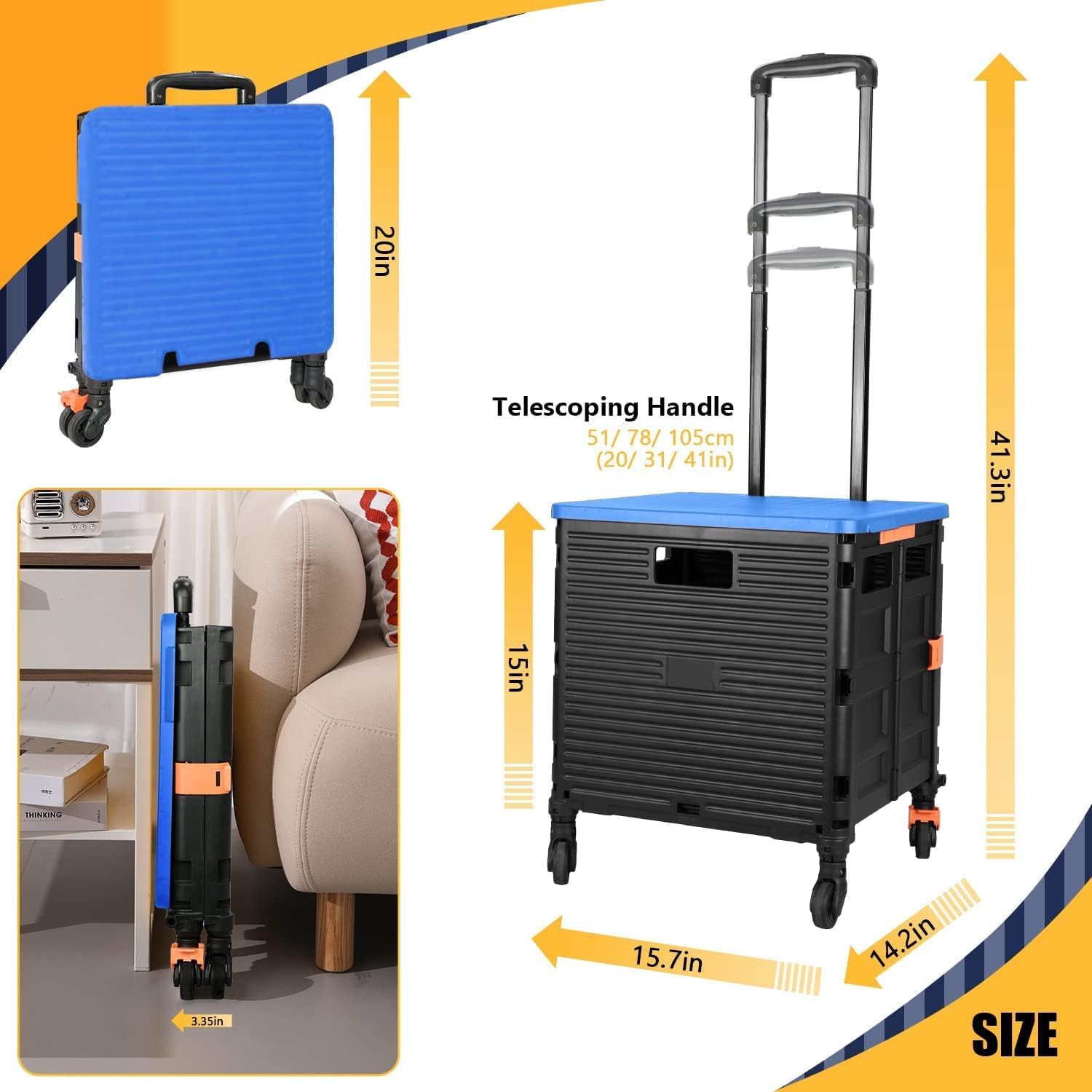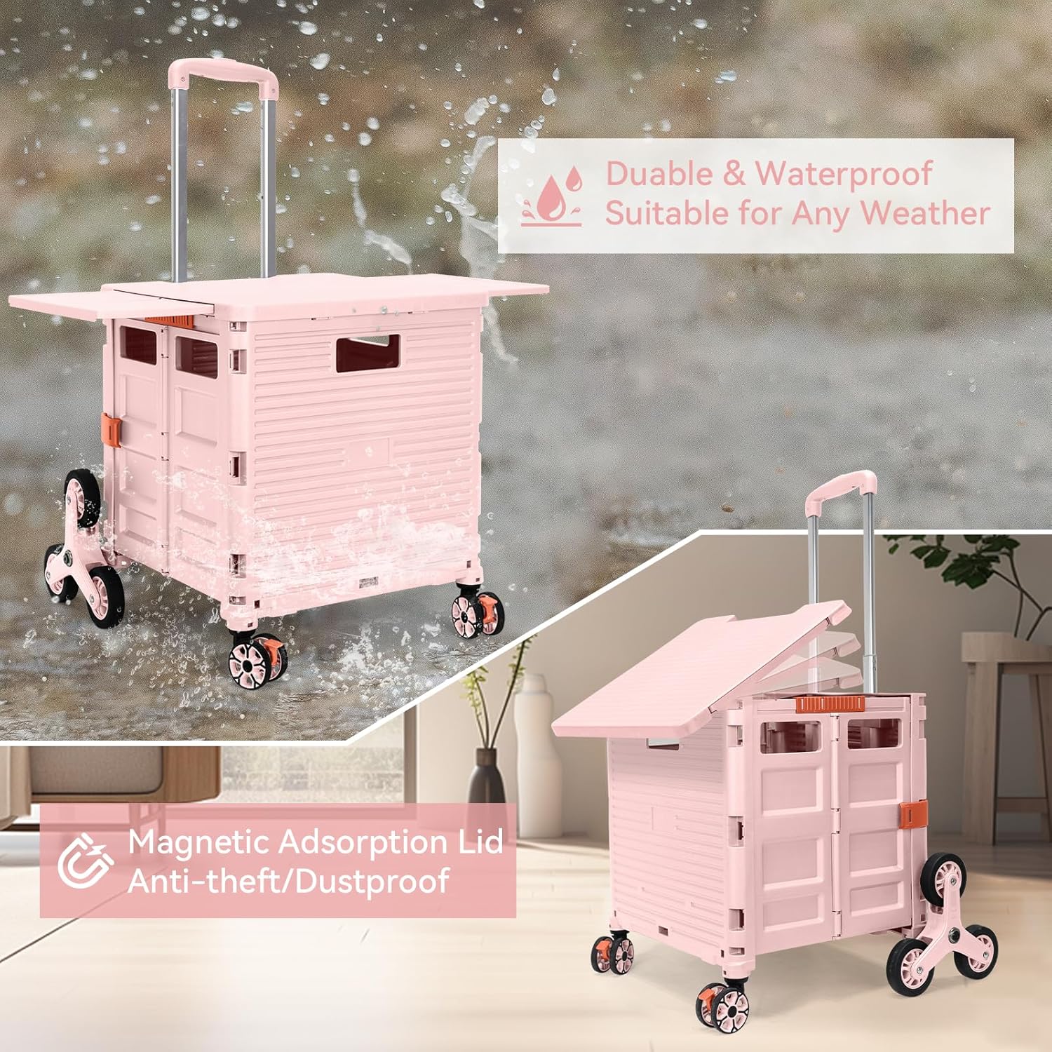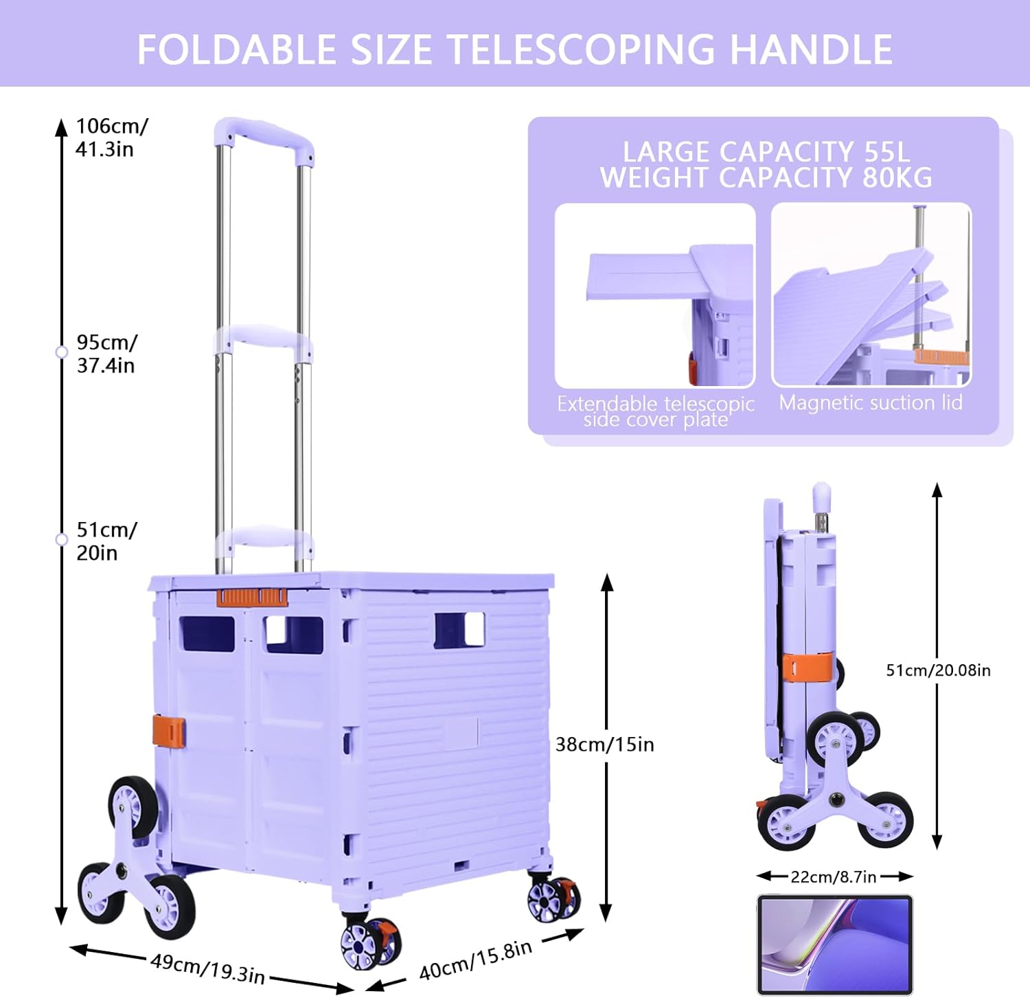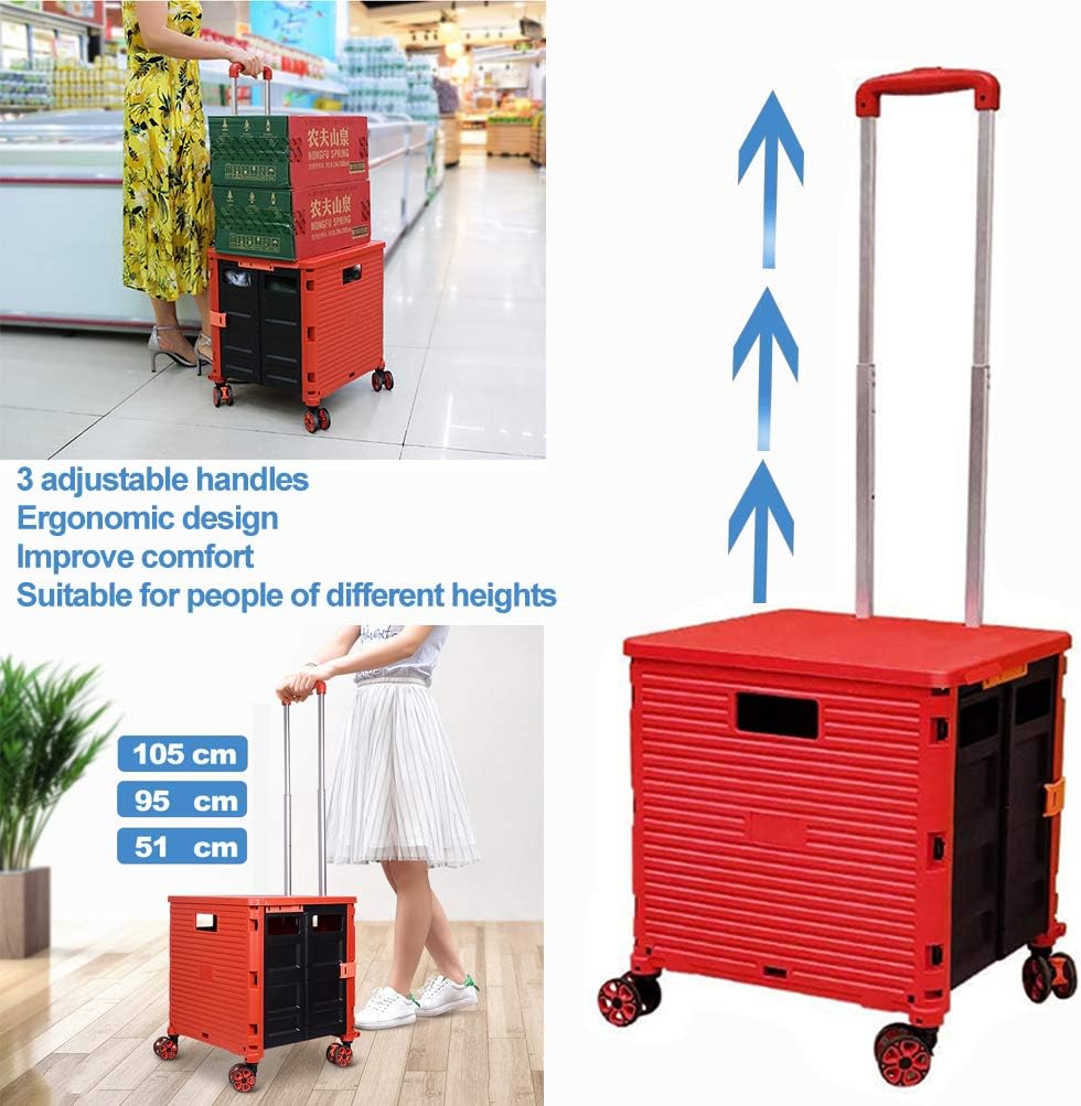 - 【Mango telescópico ajustable y tapa magnética】Diseñamos un mango telescópico ajustable de 3 niveles para nuestro carrito de mano duradero y tapa deslizante magnética extensible que te permiten transportar más diferentes tipos de artículos como libros, archivos, suministros de aula, lavandería o suministros de arte para viajes, compras, picnic o mudanzas, etc.